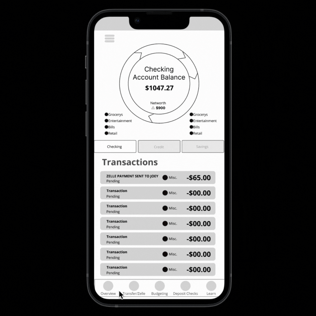 This was the first iteration of the new Bank of America mobile application prototype. I created this on my own to work on the insights gained from the last user test in the first iteration.