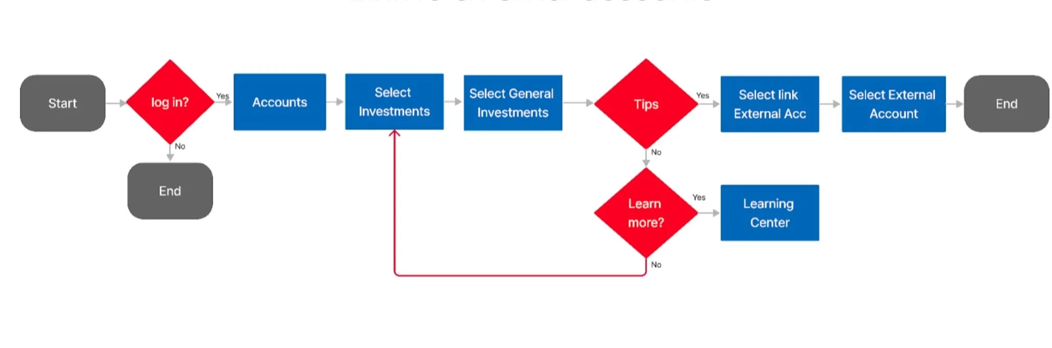 We decided to work on Three Flows: Flow One for Jack to be able to categorize his expenses. Flow Two for Jack to link his external investing accounts to the app and Flow Three for Jackie to help her to create a saving goal for her trip to Cancun.