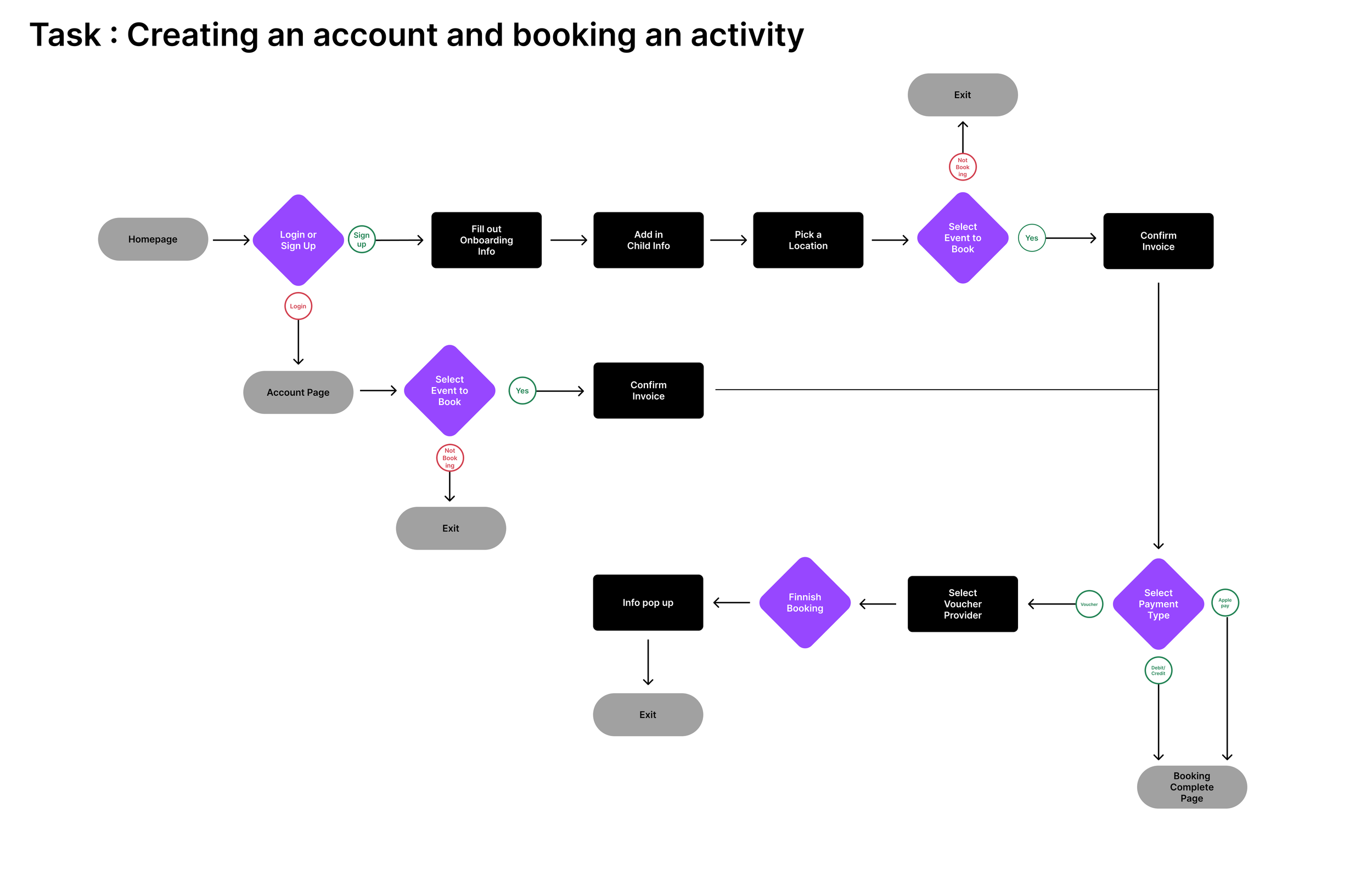 We started off by coming up with the ideal path we wanted customers to take when signing up for an account and booking an event