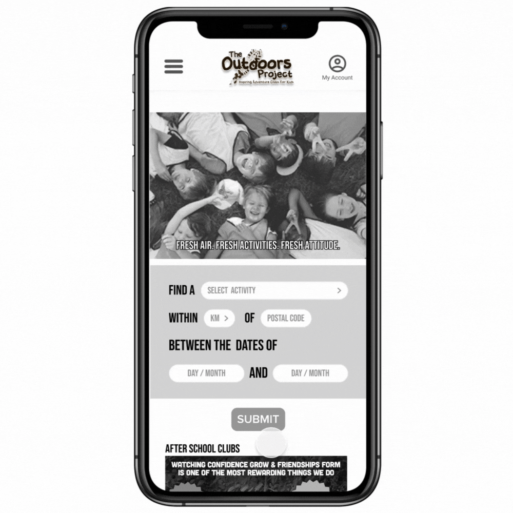 The Outdoors Project is a UK franchise that provides parents/caregivers with children of ages 5-11 with activities clubs for kids. The Outdoors Project connected with our team because their goal was to improve the customer journey to reserving a service via their website.